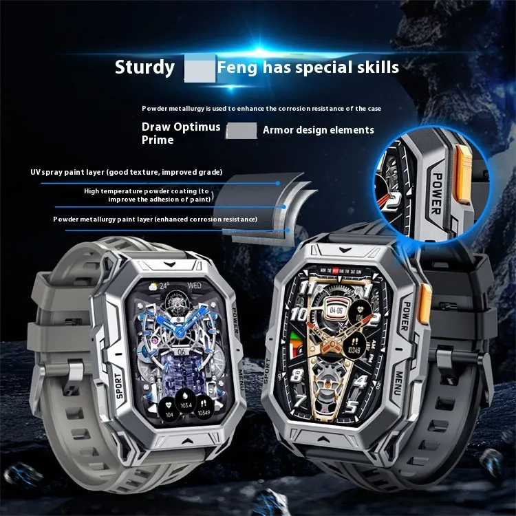 Functions: Waterproof, step counting, heart rate monitoring, blood pressure measurement, social entertainment, Bluetooth calling, smart