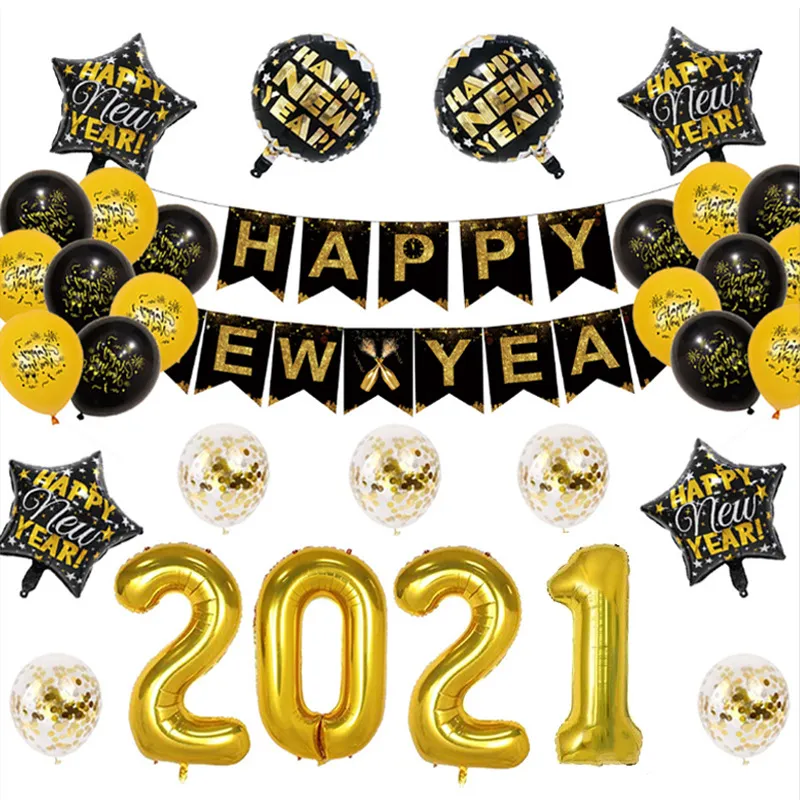 Happy New Year Banner and Accessories – The set also includes a "Happy New Year" banner that complements the balloons
