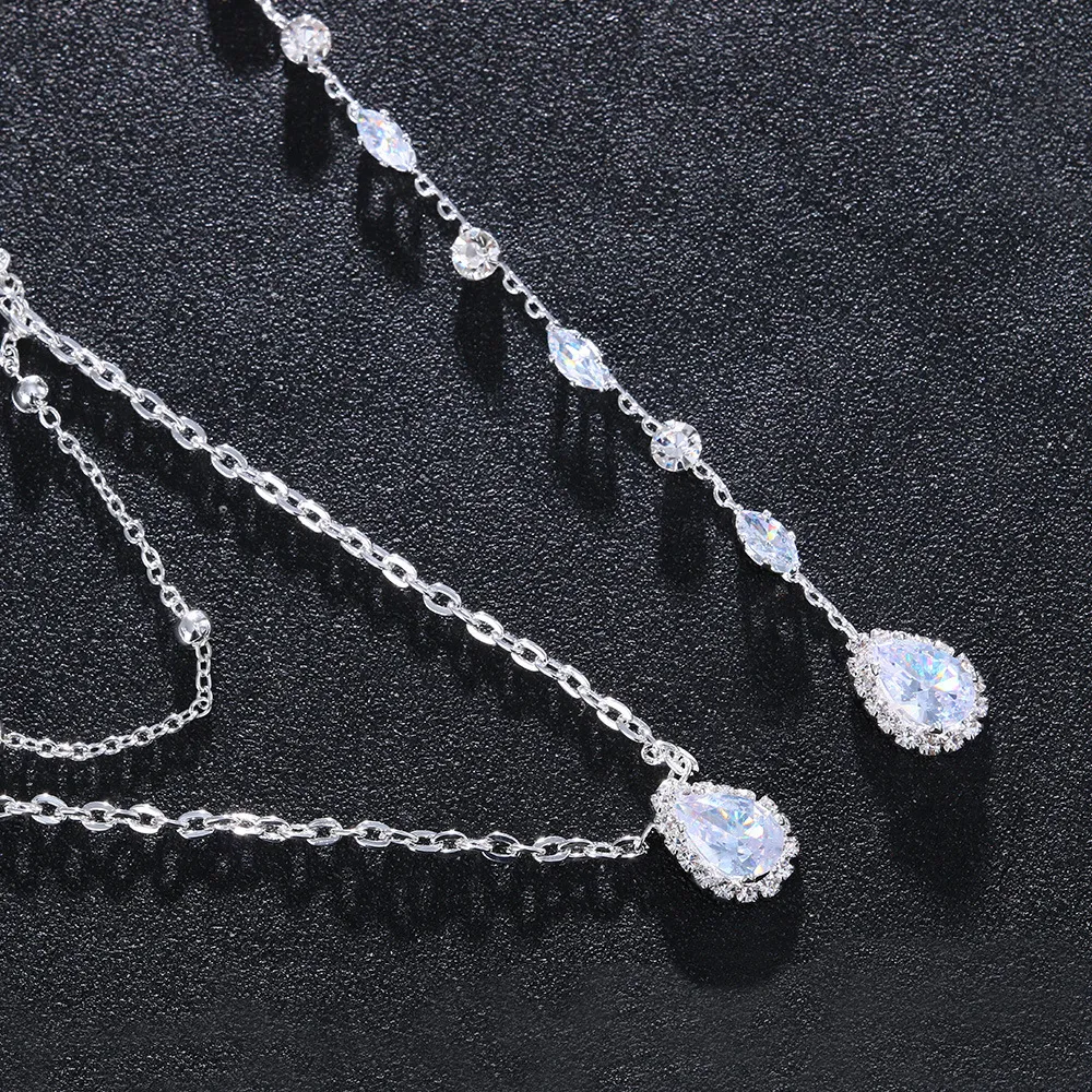 New Zirconium Water Drop Necklace Stone Back Chain