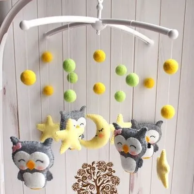 Newborn Owl Hand-Made Fabric Crib Rattle Toy
