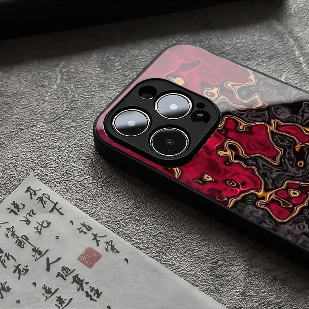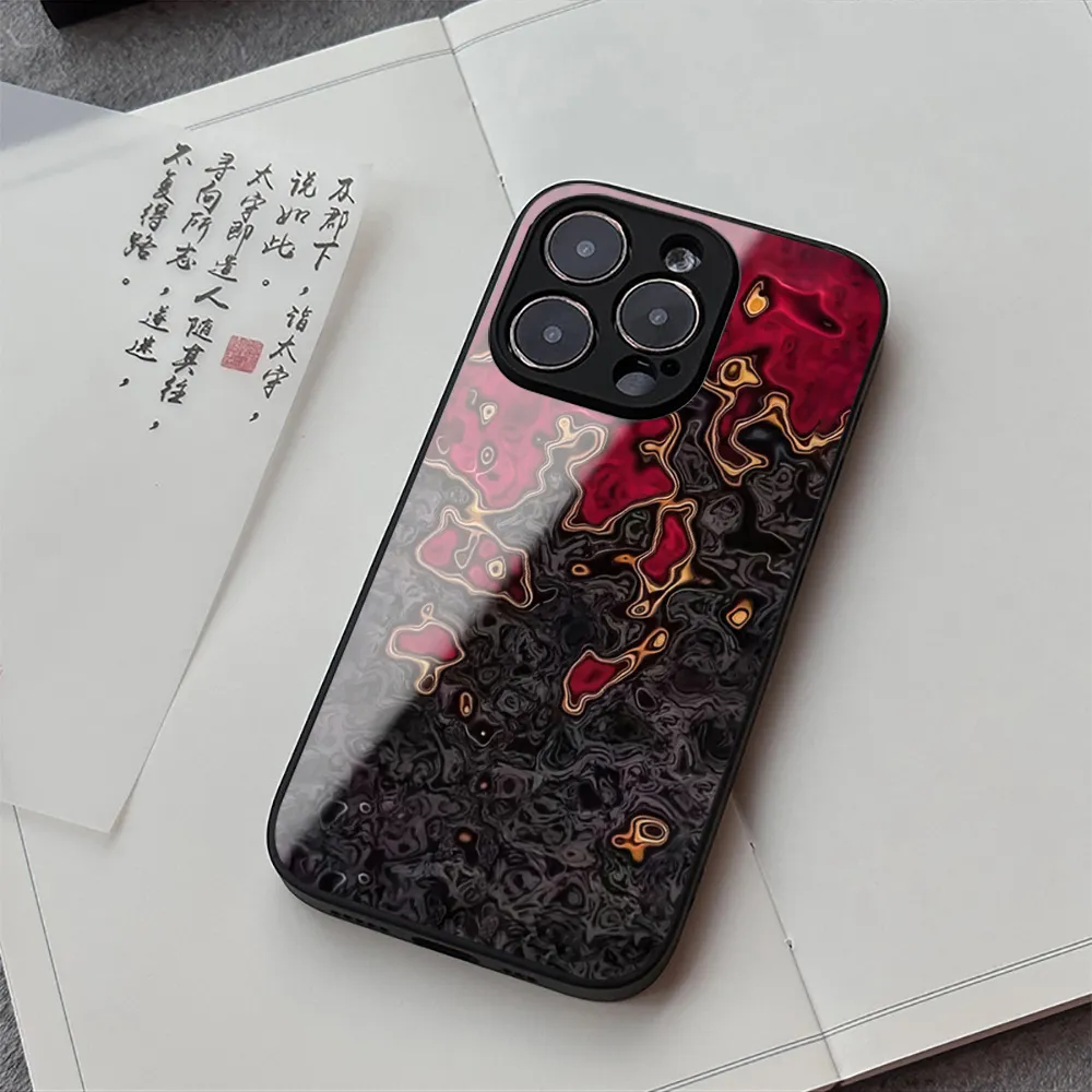 Stand out with the Niche Dark Lava Glass Shell Mobile Phone Protective Case, inspired by the natural beauty of molten lava. Its dark gradient glass back with flowing lava textures creates a bold, artistic look, perfect for users who love niche fashion and individuality.