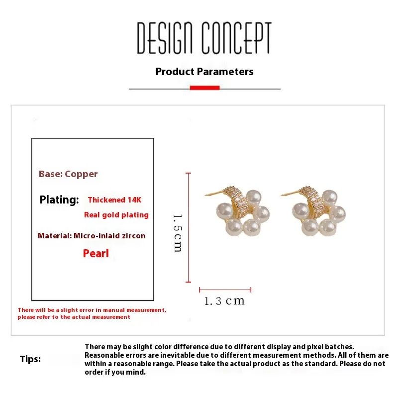 Color: Micro inlaid pearl Zircon stud earrings (thick gold plated)