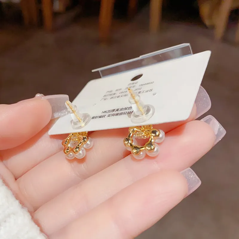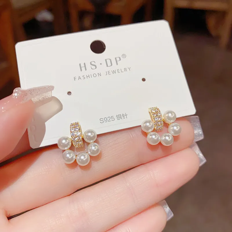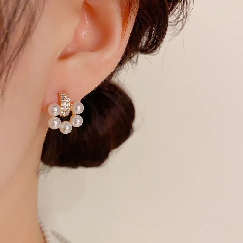 Niche Design Micro Inlaid Pearls Zircon Stud Earrings For Women