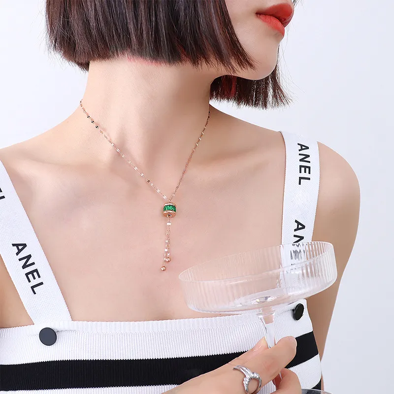 Niche Design Retro Light Luxury Emerald Tassel Pendant Necklace