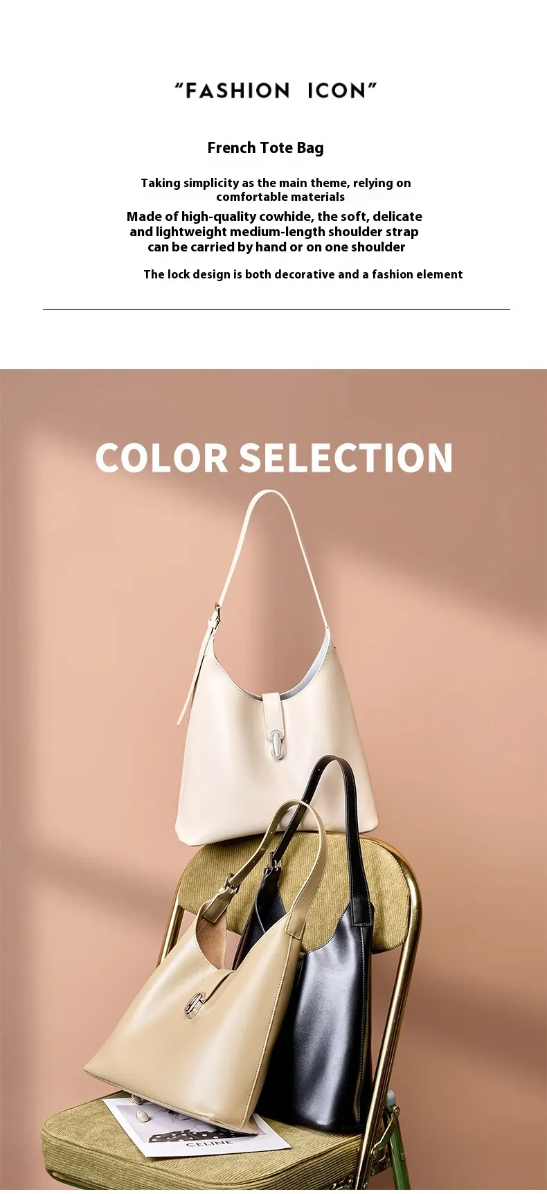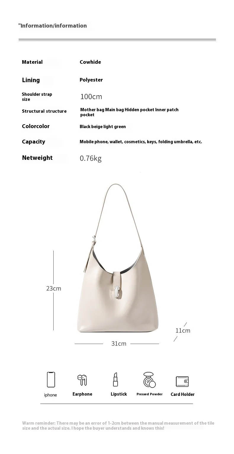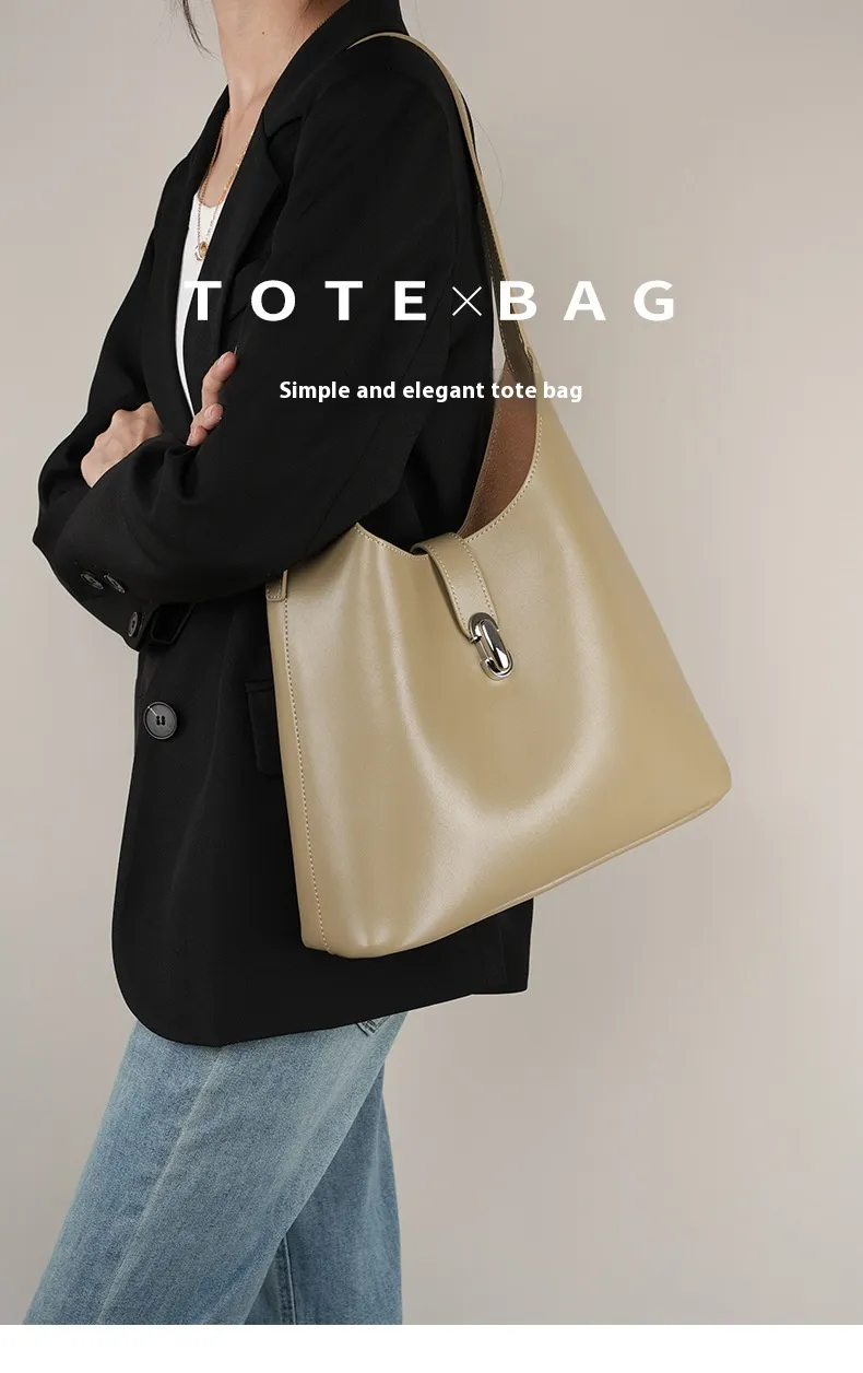 Niche Portable Tote Bag Cowhide Large Capacity Shoulder Underarm