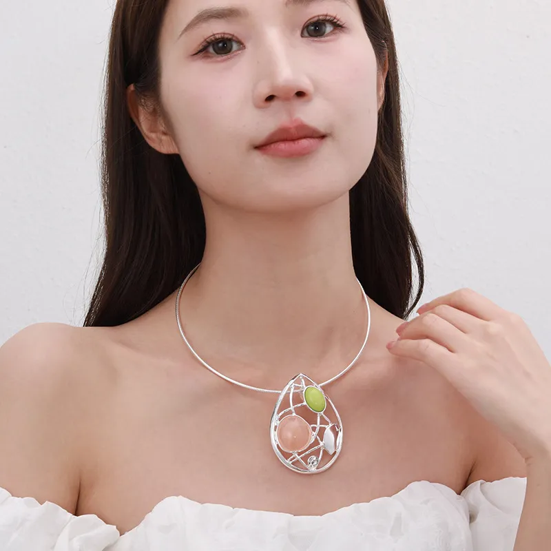 - Formal elegance: The necklace can be worn with a cocktail dress or evening gown, enhancing formal wear with its delicate design and modern appeal.