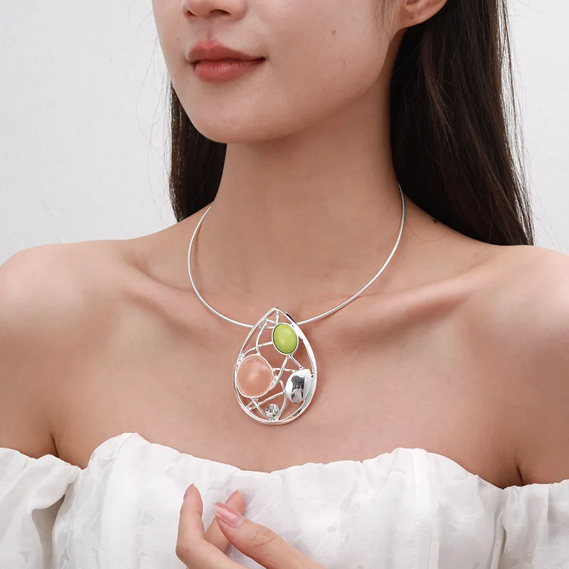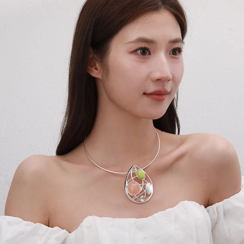 Features of the Niche Water Drop Geometry Pendant Design Clavicle Chain Necklace