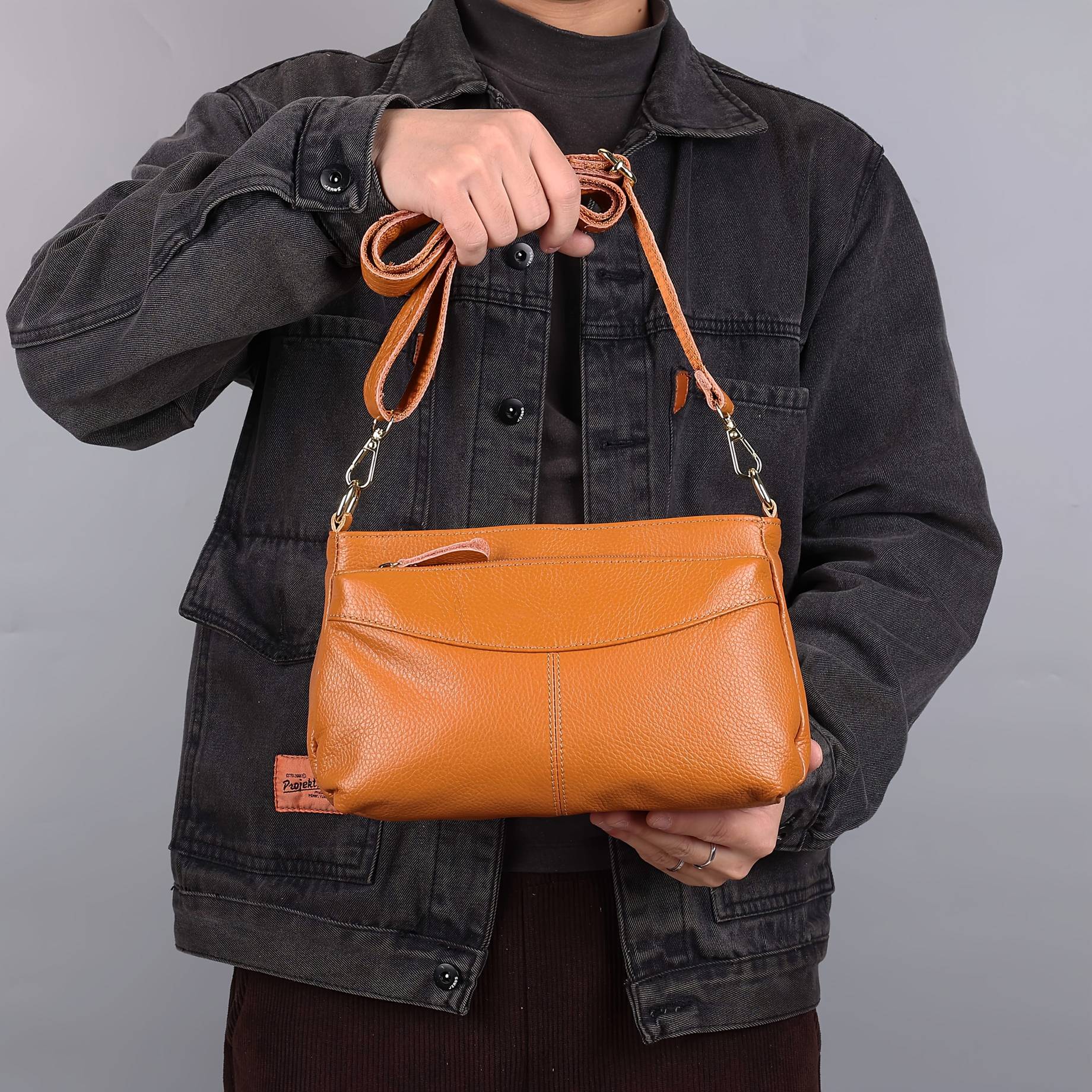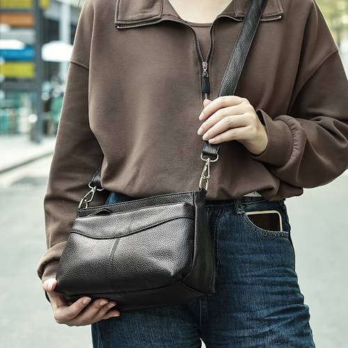 NIUCUNZH Womens Genuine Leather Crossbody Bag Sleek Black Handbag with Detachable Strap & Multiple Zipper Pockets