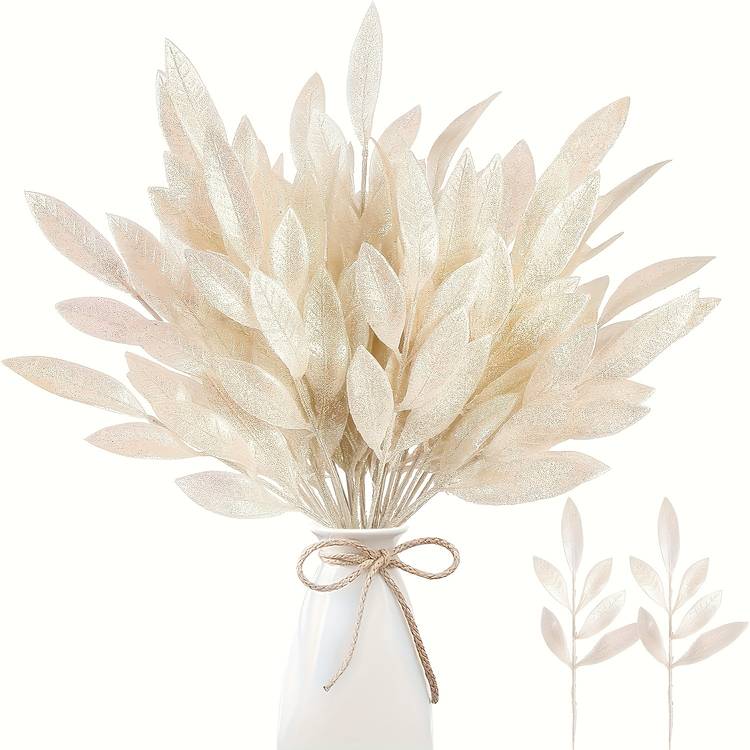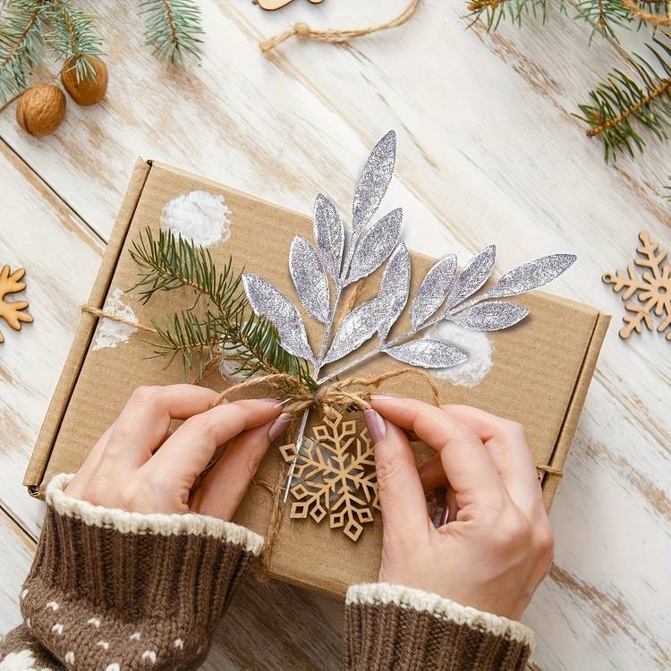 Each glitter leaf spray is crafted from high-quality plastic with a shimmering silver finish. The branches are lightweight yet sturdy, easy to insert into trees, wreaths, vases, or floral foam.