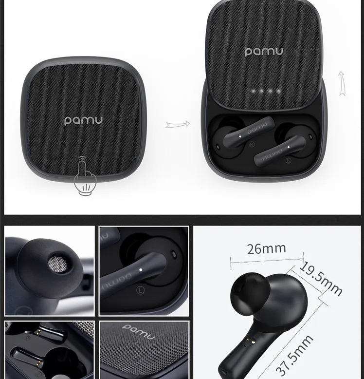 Product size: Charging cabin size 72× 72× 38.5mm. Earphones measure 37.5x 26x 19.5 mm