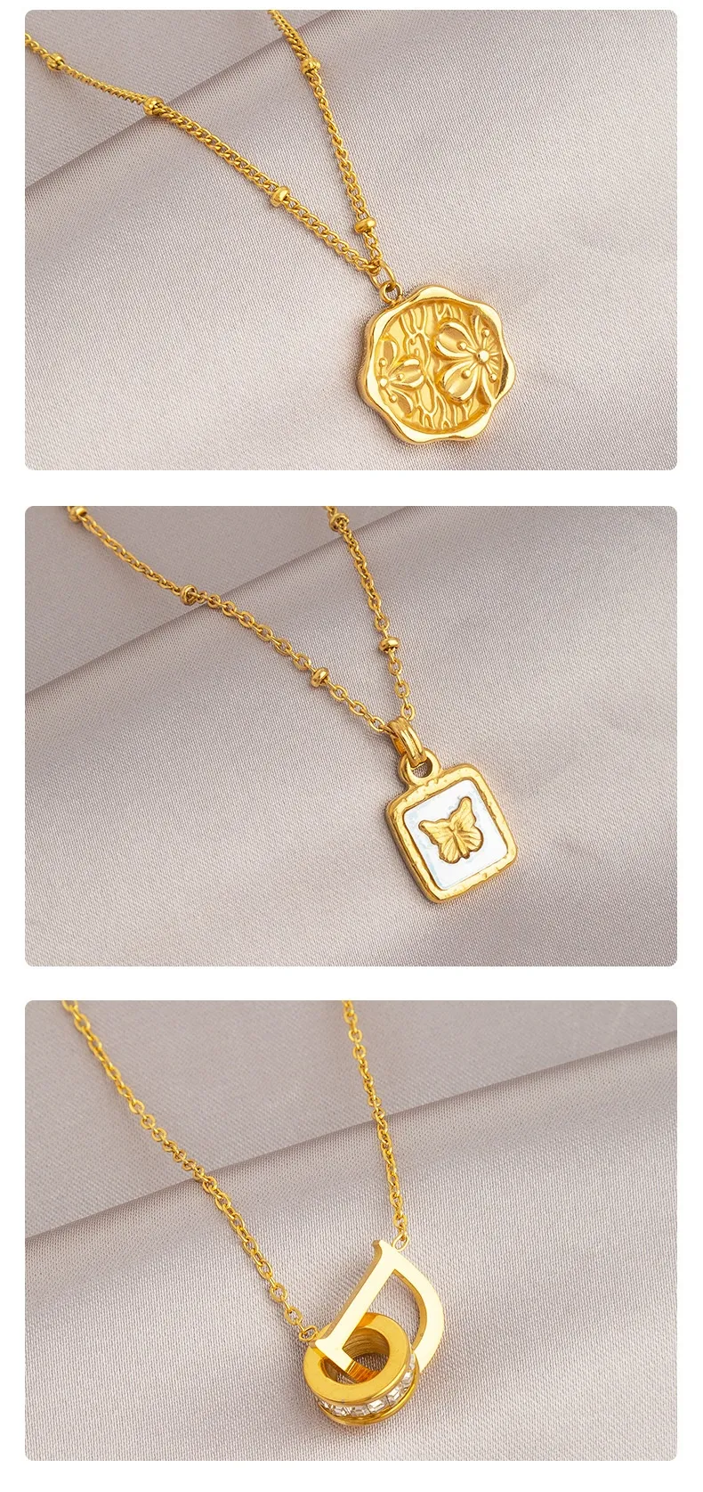ring letter D necklace, Gold Peach Blossom imprint necklace, gold ball stitching necklace, gold rose Pearl double layer necklace, gold opal