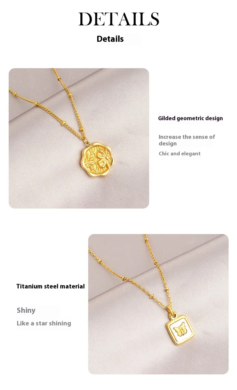 necklace, gold Mobius necklace, gold titanium steel small square necklace, gold heart shaped necklace, gold small square necklace, gold
