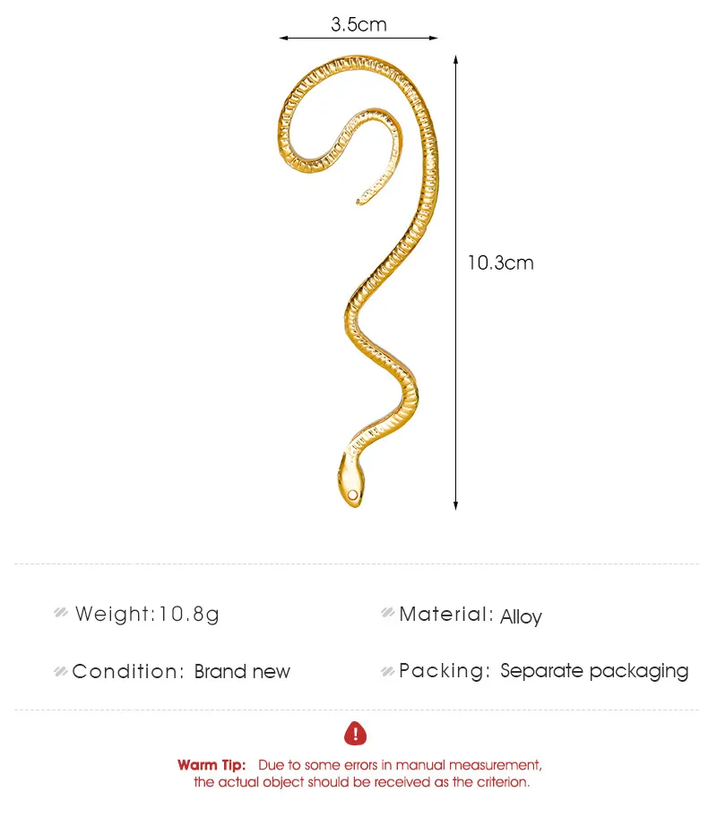 For Left Ear Only! High polished and hypoallergenic Metal for Sensitive Ears, Vintage Style, High-Quality Plating & Polished Cool Snake