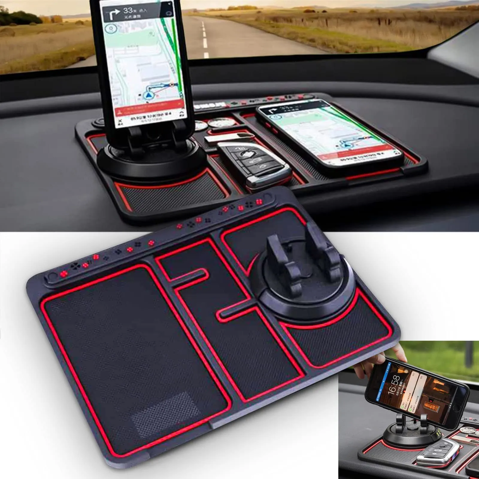 place. Featuring a 4-in-1 design, this multi-functional mat serves as a phone holder, parking number card, anti-slip mat, and sticky dash