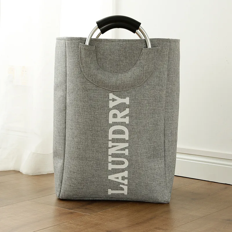 Nordic Style Amazon Explosion Models Aluminum Alloy Handle Fabric Storage Bucket Folding Home Storage Basket Dirty Clothes Hamper