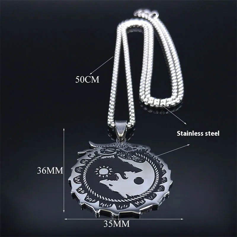 Nordic Viking Celtics Yin And Yang Wolf Dragon Necklace