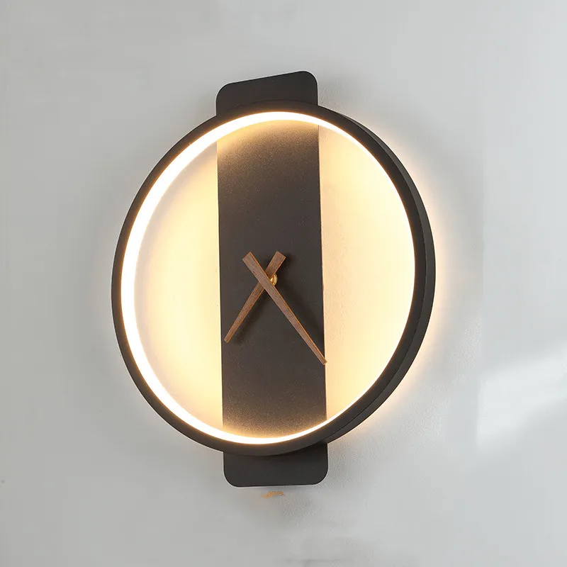 The Nordic Wall Lamp Bedroom Bedside Lamp Clock Modeling Lamp is a chic and functional lighting solution that adds a contemporary touch to any bedroom. Combining the elegance of minimalist Nordic design with the practicality of a clock, this wall-mounted lamp provides both stylish illumination and timekeeping, making it an ideal choice for bedside use. The sleek and simple design complements modern, Scandinavian-inspired interiors, enhancing the overall ambiance of the room.