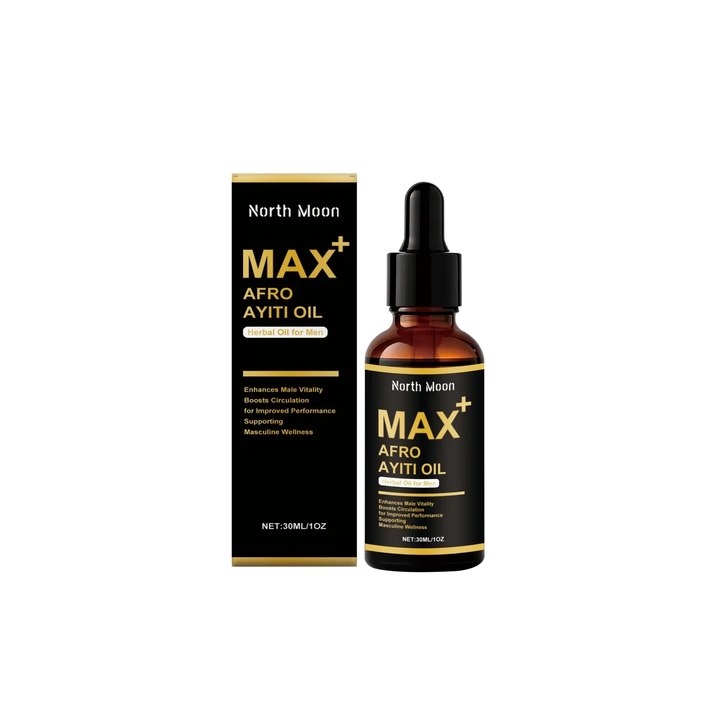 North Moon MAX+ Afro Ayiti Oil – Herbal oil to enhance male vitality, boost circulation, and support overall wellness for men.