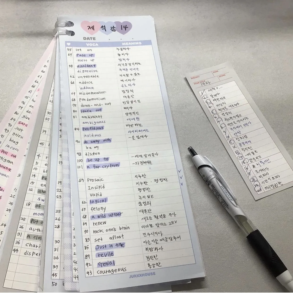 Vertical Layout: The vertical format is designed for easy and efficient writing, making it simple to list new words, write