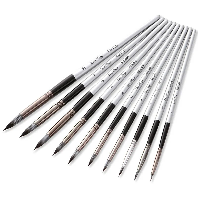 Nylon Hair Brush Silver Gray Rod Round Front Watercolor Oil Painting Set Hook Line Pen Soft