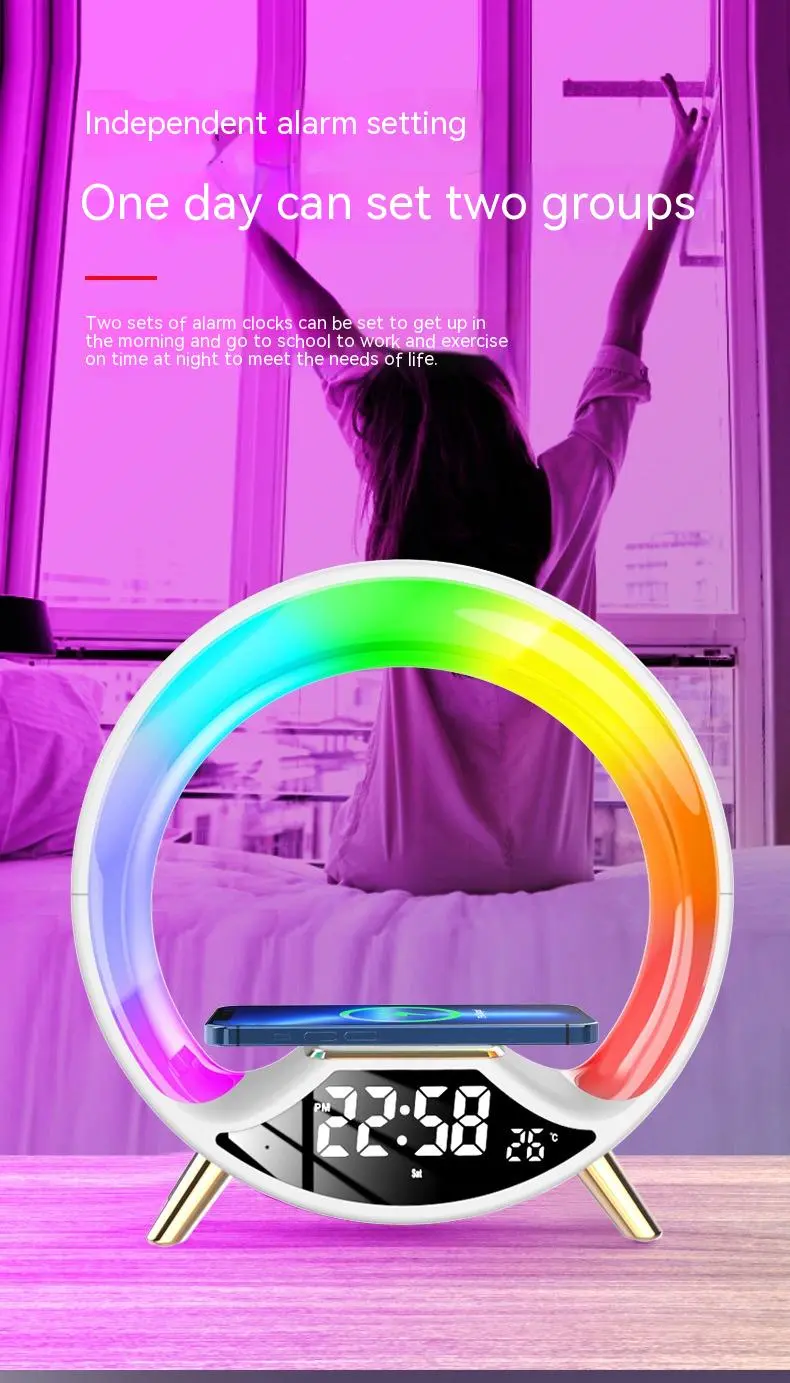 Transform your space with the O Light Three In One Wireless Charging Multifunctional Bluetooth Speaker Night Light, a smart and versatile device that combines wireless charging, a Bluetooth speaker, and a night light all in one sleek package. Perfect for your bedroom, office, or home, this multifunctional lamp enhances both your décor and daily convenience. Whether you're listening to music, charging your phone, or enjoying a cozy light, this device covers all your needs.