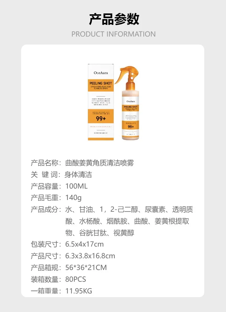 Kojic Acid is known for its skin-brightening properties, while Turmeric adds an anti-inflammatory boost that helps soothe and calm irritated skin. The innovative spray design makes it convenient and easy to apply, providing a clean, smooth, and refreshed feel without the need for additional steps. Whether you're looking to enhance your skincare routine or target specific skin concerns like pigmentation or dark spots, the OCEAURA Kojic Acid Turmeric Cutin Cleaning Spray is the perfect addition to your beauty regimen.
