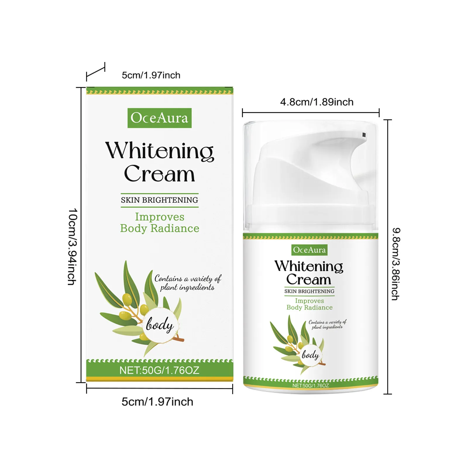 Whitening cream, skin brightening cream, radiance-enhancing cream, body whitening cream, skin tone improvement, smooth skin cream, hydrating skin cream, OceAura whitening cream, anti-dark spot cream, brightening lotion, gentle skin cream for sensitive areas.