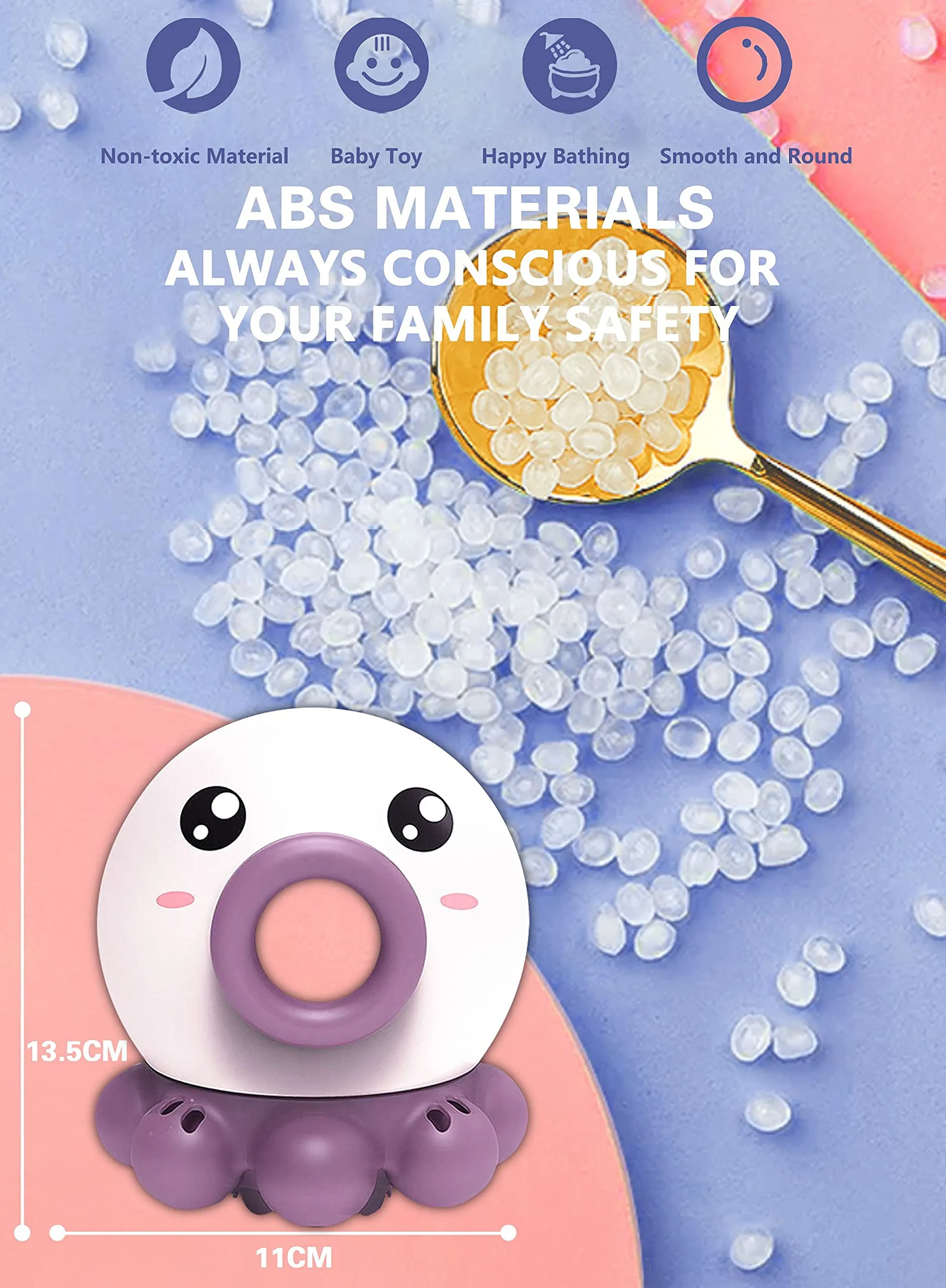 - Vibrant Colors: The Octopus Fountain Bath Toy comes in bright, attractive colors that are sure to grab your child's attention. The playful design and cheerful colors make it appealing to kids, turning water play into a colorful, exciting experience.