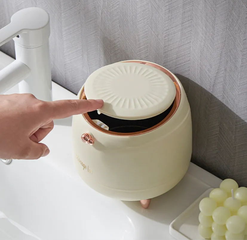 Office Home Mini Plastic Press Type Wastebasket Creative Desktop Trash Bin