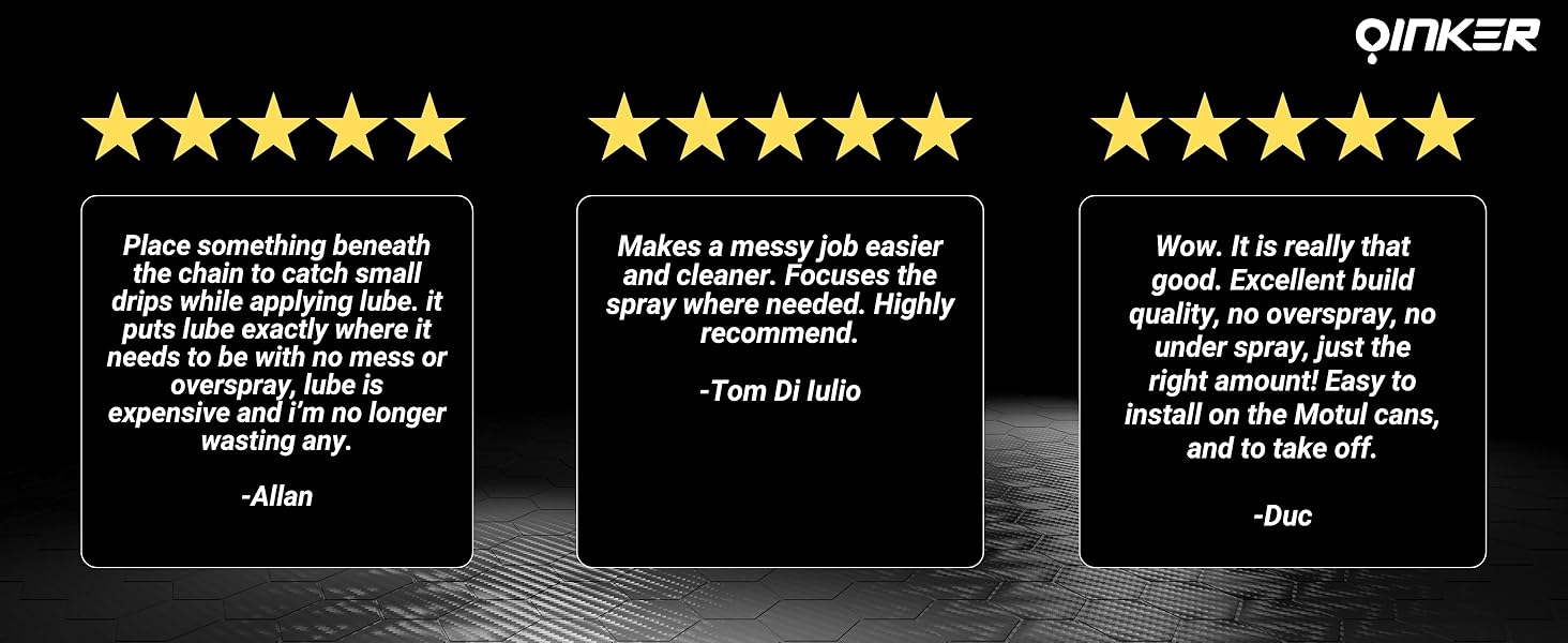 [Eliminate Fling-Off and Overspray] Applies lube exactly where it's needed—nowhere else. No more mess on your wheels, swingarm, or garage floor.