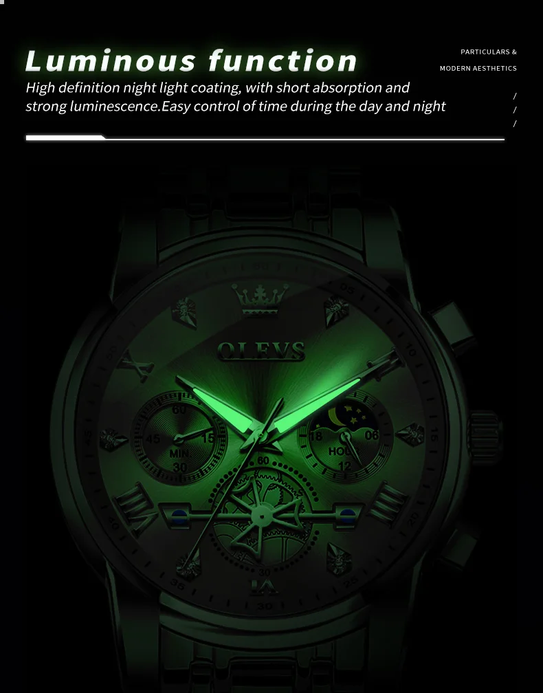 Equipped with a reliable quartz movement, the OLEVS watch provides precise and accurate timekeeping, making it a dependable accessory for