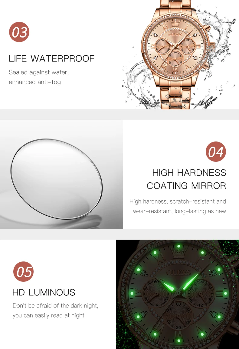 To ensure your OLEVS Women’s Quartz Watch maintains its pristine condition, here are a few tips: