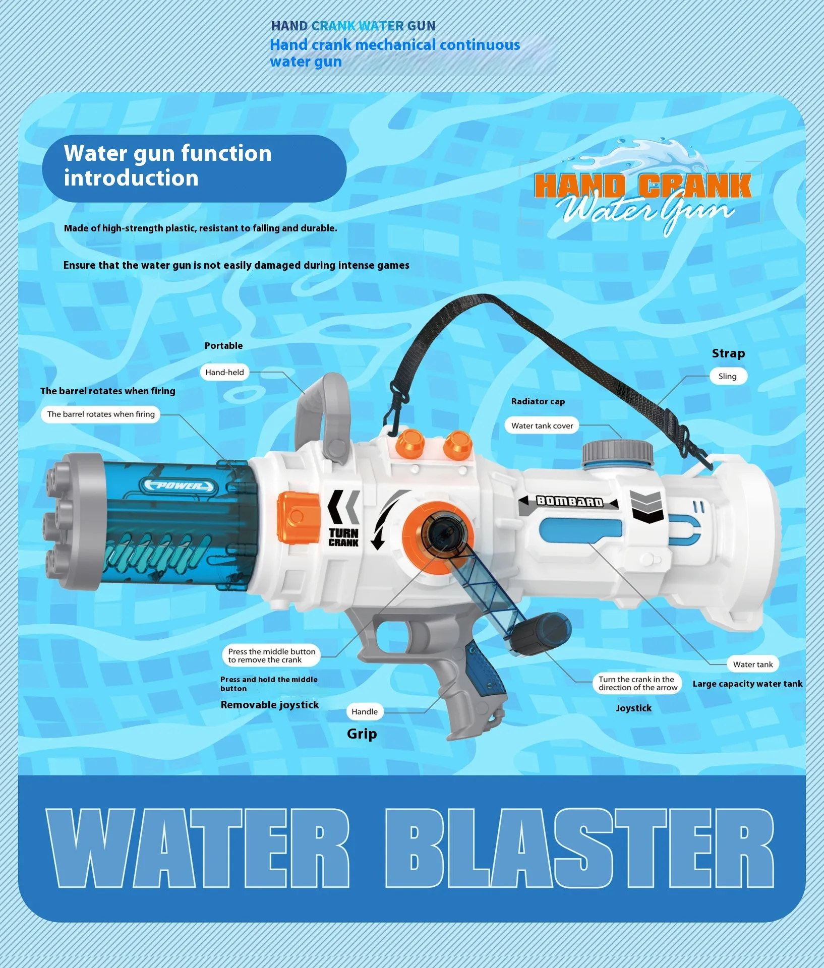 Color: hand Gatling water gun [1000ML] White, hand Gatling water gun [1000ML] Blue