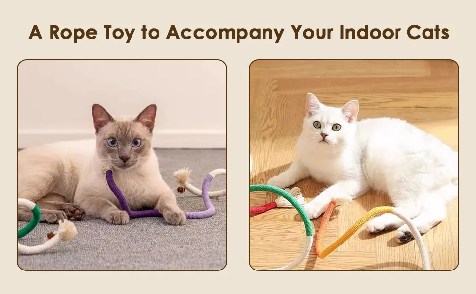 - Quiet Play: These soft colorful ropes provide enriching quiet playtime without bothering cat owner's sleep or life. Your kitty will love the funny snake-like shapes, enhancing their playtime with every pounce and bite.