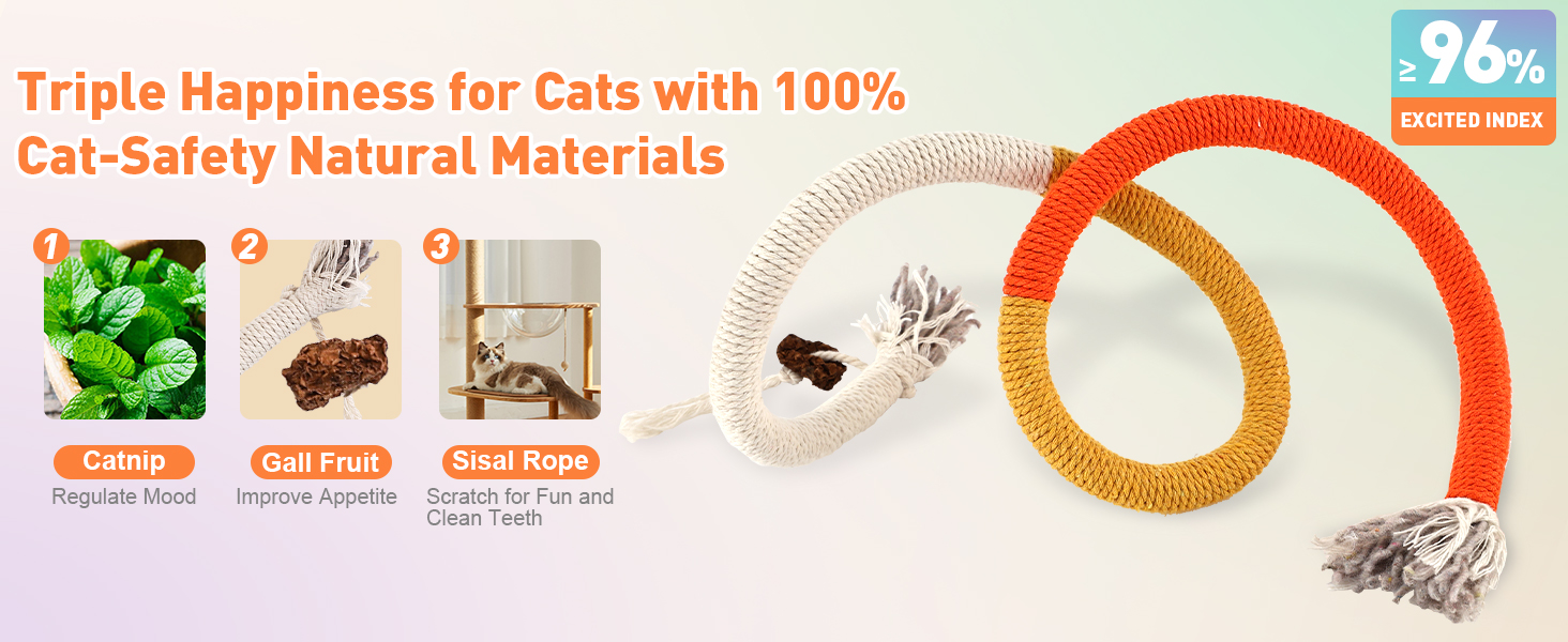 - 【Regulate Mood Kitty Toys】Watch your cat's curiosity come alive with our interactive rope cat toy, complete with a dangling gall fruit at the end. Stimulating your cat's natural hunting instincts, this toy provides endless amusement and promotes overall well-being.