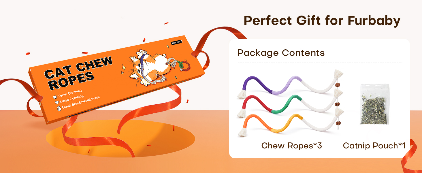 - Fun Cat Teeth Cleaning Toys: The cat chew ropes are perfect for teething cleaning toy, they combat tartar and freshen breath, making dental hygiene a fun activity for your cat baby.They’re an essential, eco-friendly addition to your cat’s enrichment collection
