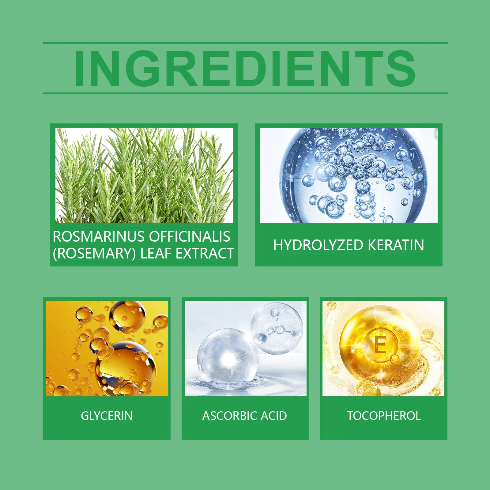 Product ingredients: glycerin, rosemary extract, hydrolyzed keratin, vitamin C (ascorbic acid), vitamin E (tocopherol)