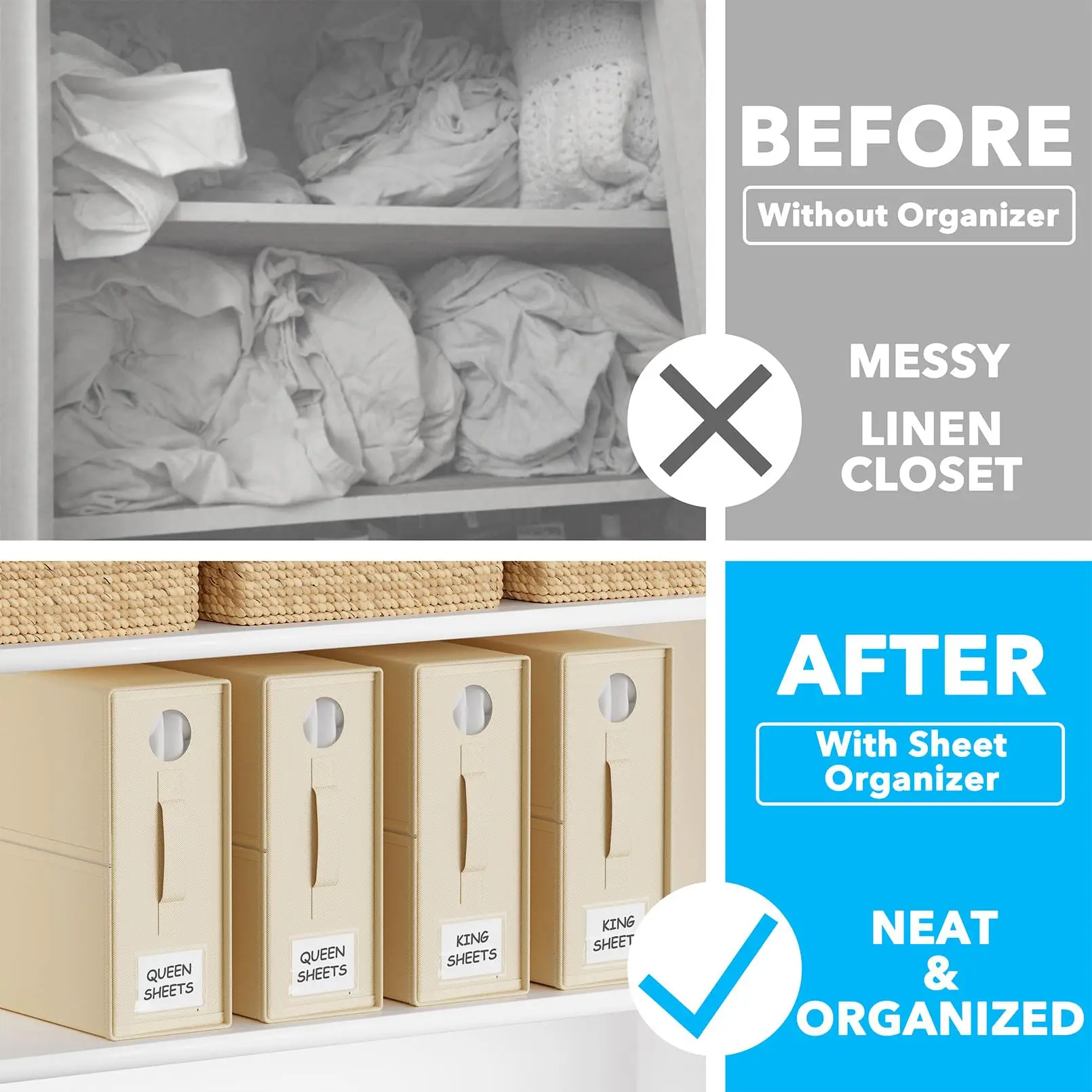 💬 Your home deserves the best. Elevate your linen storage with our elegant, premium sheet organizer that blends seamlessly into your home décor.