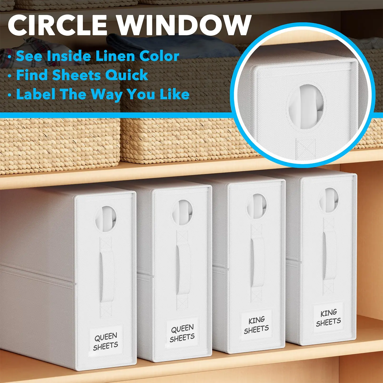 Organizer Box for Bedding Storage | Wardrobe Organizer for Comforters, Sheets, and Blankets | Foldable and Breathable Fabric with Clear Viewing Window