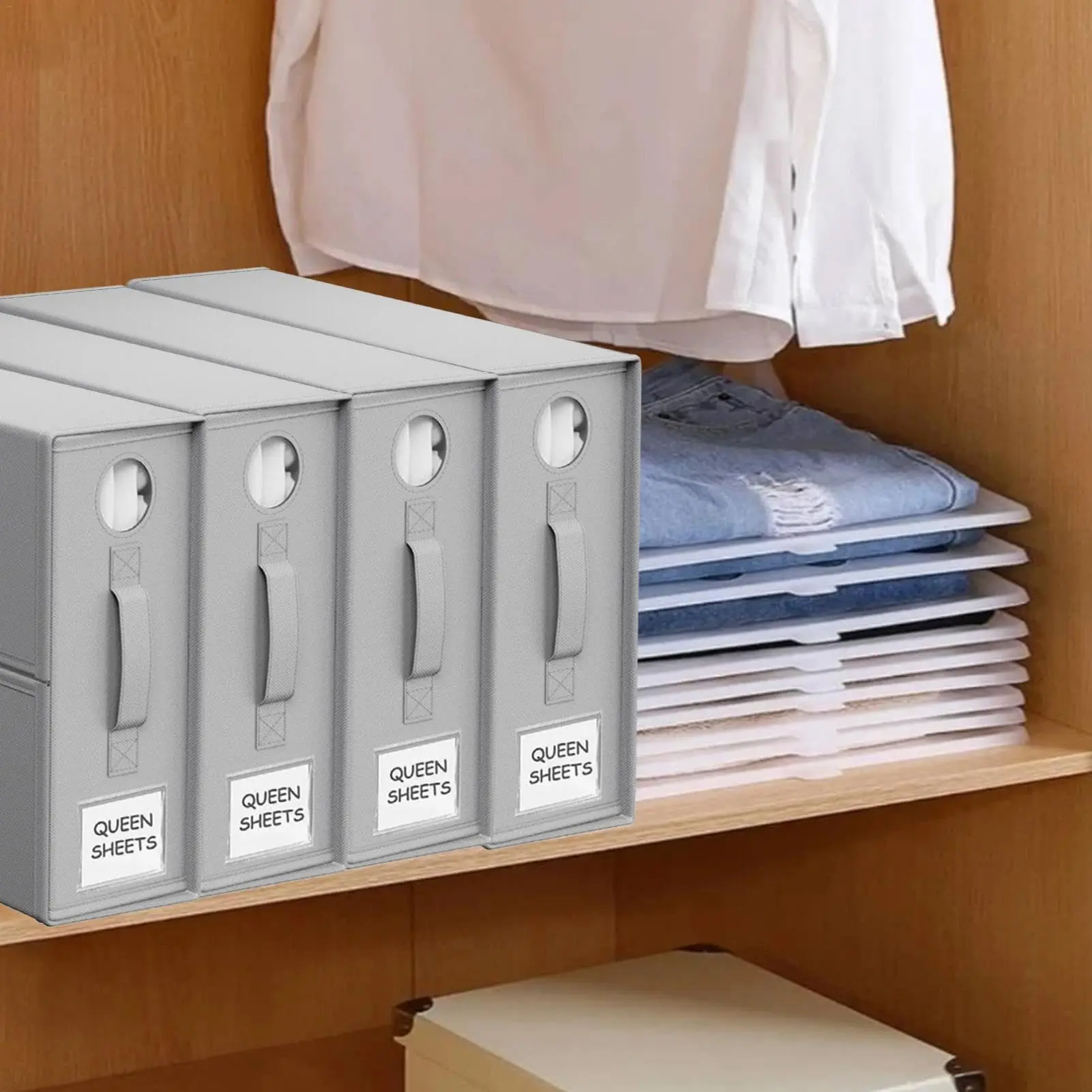 💬 Living in a small space? Maximize every inch with our folding sheet organizers. Store your linens under the bed, in a closet, or on a shelf—neatly and compactly!
