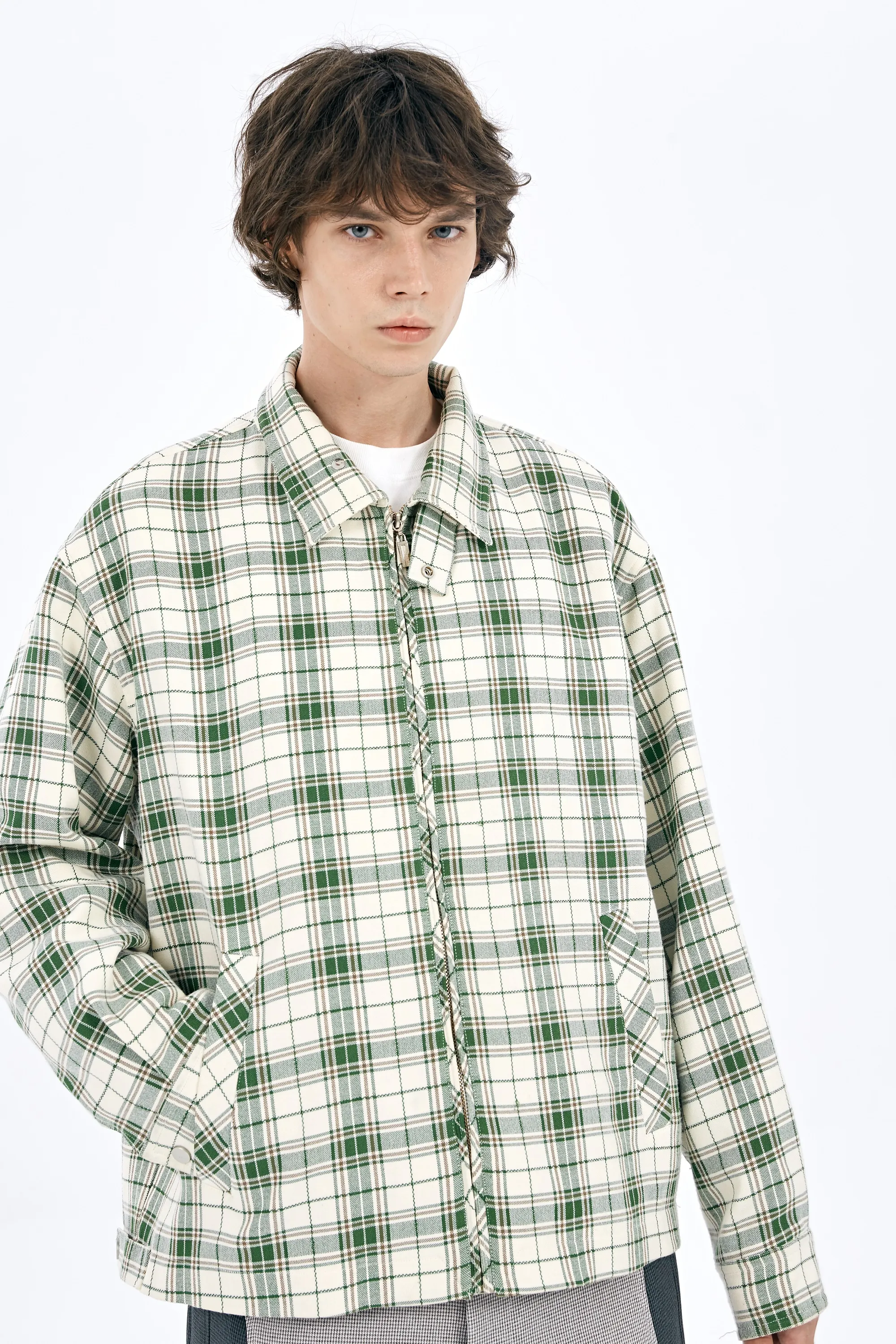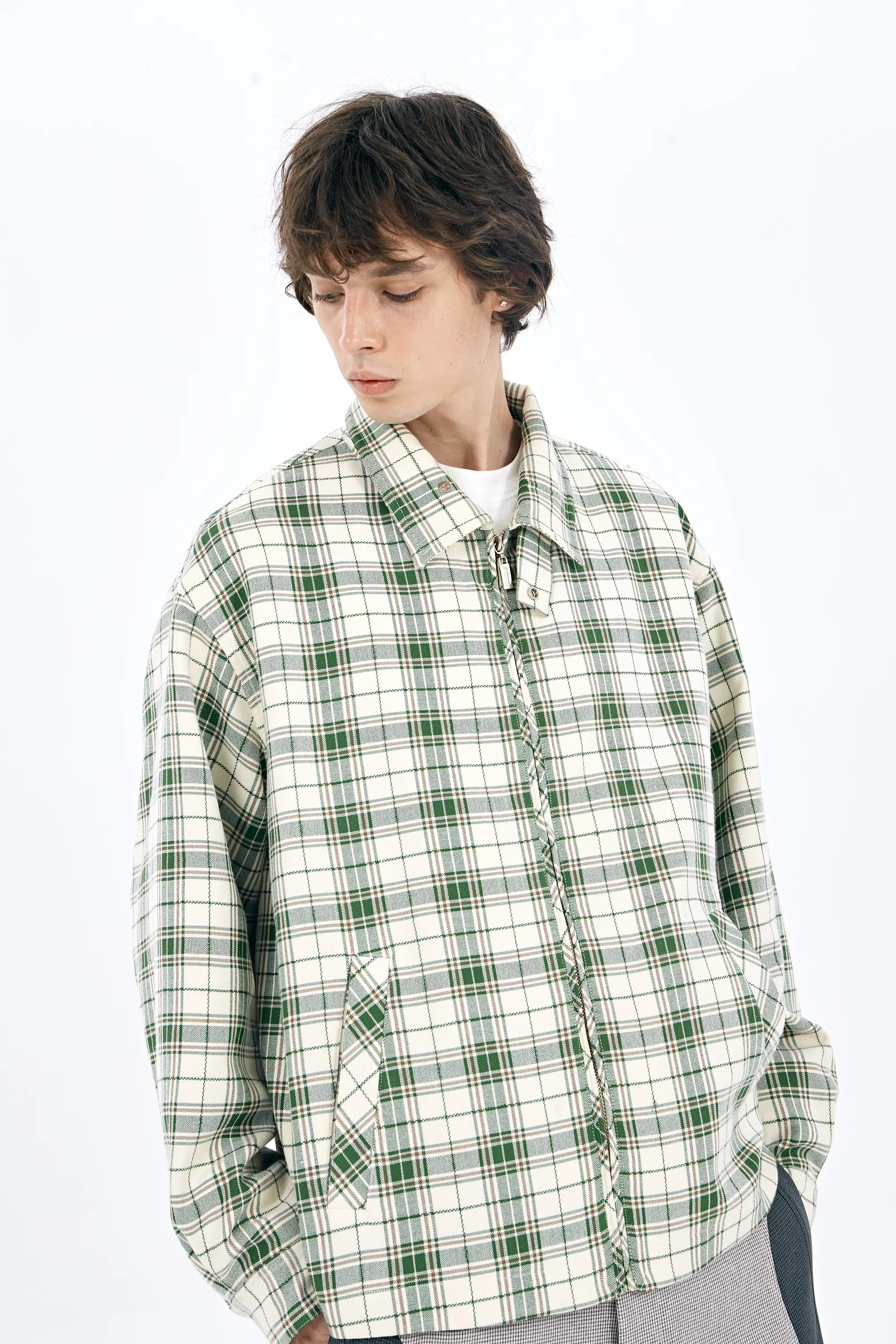 Original Design Jacket In Green Plaid Fabric