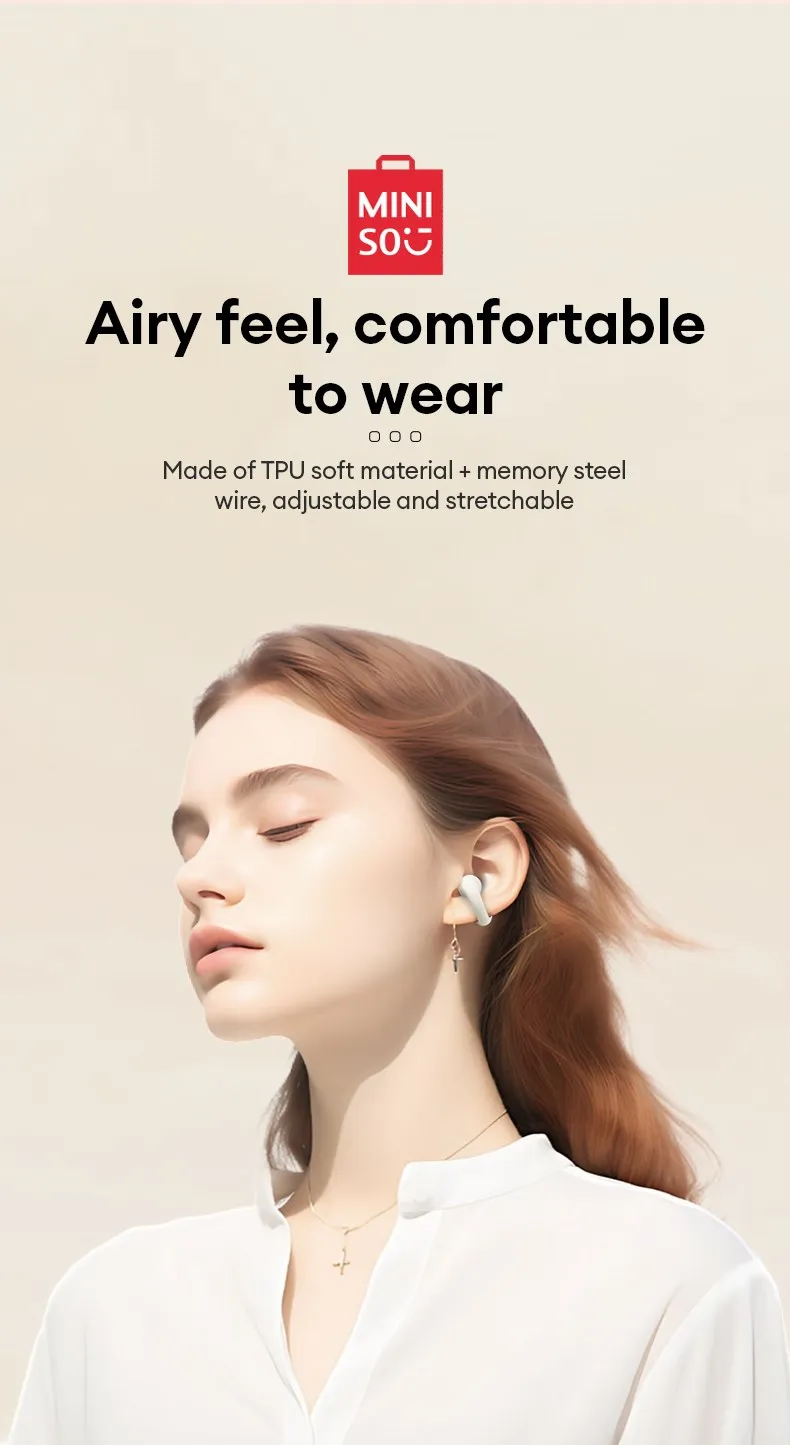 The MINISO MCT09 Wireless Bluetooth V5.3 Earphones represent the perfect blend of modern technology and practical design. With features like touch control, an ear clip design, and high-quality audio, these earbuds are an excellent choice for anyone seeking reliable and stylish wireless earphones. Whether for sports, running, or everyday use, the MCT09 provides a comfortable fit and exceptional performance, making it a valuable addition to your audio gear.