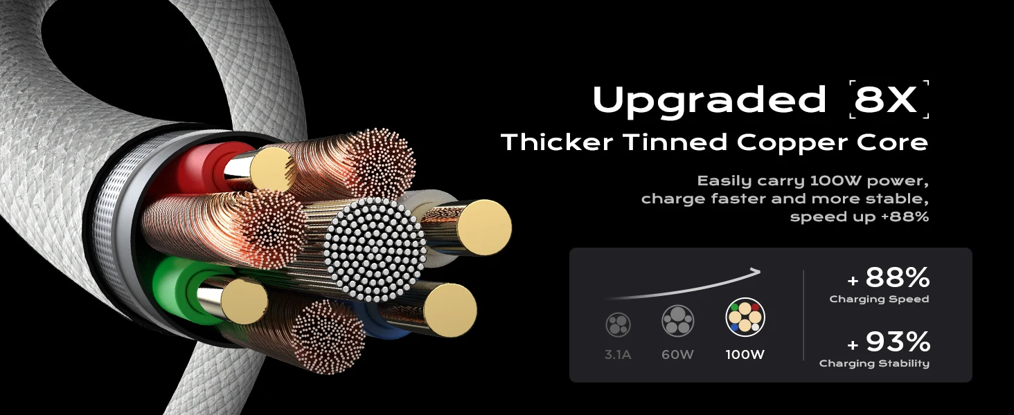 The data transfer speed of this USB C Cable is up to 480Mbps between two devices, which means download 100 songs every 5 seconds.