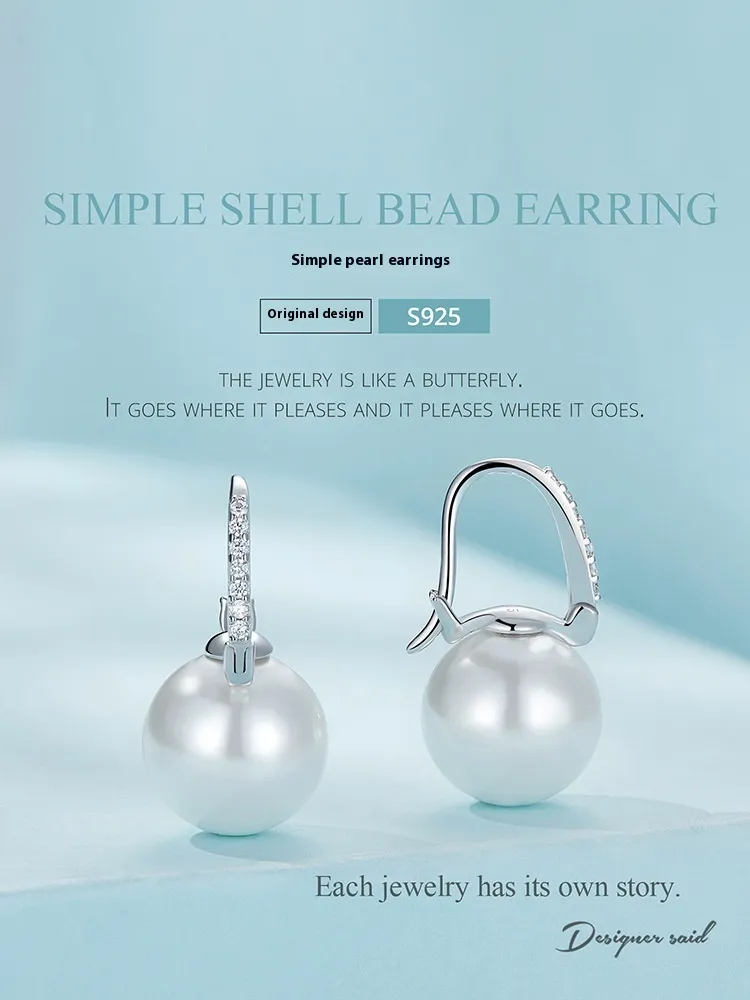 Original Sterling Silver S925 Fashion Commuter Simple Shell Pearl Earrings