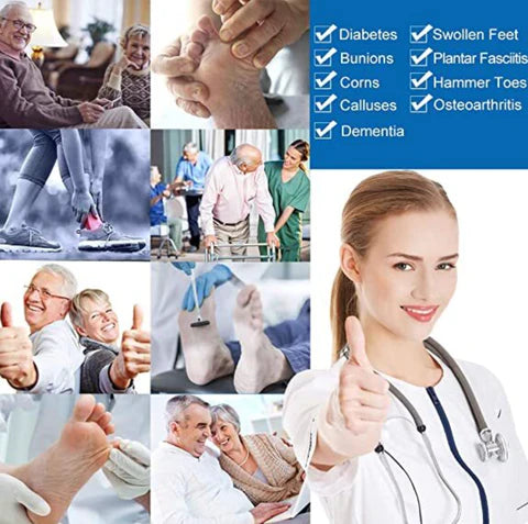 Ideal for those who need extra stretch, comfort and soft to accommodate Swollen Feet, Bunions, Plantar Fasciitis, Corns, Calluses, Osteoarthritis, Rheumatoid Arthritis, Hammer Toes, Morton's Neuroma, Oedema, Dementia, Injuries involving tendons, muscles, and bones or need a Post-op shoe.
