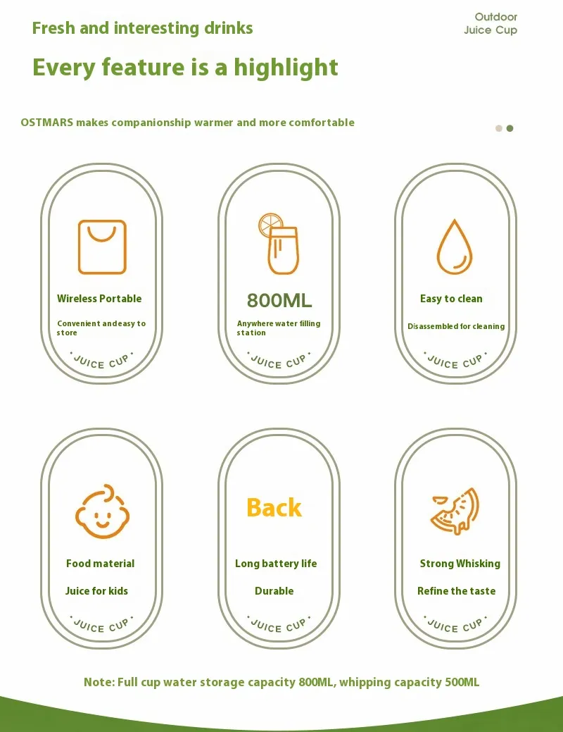 - Environmentally Friendly: With its rechargeable battery and eco-friendly materials, the OSTMARS Juicer helps reduce single-use plastic waste from store-bought bottled juices.