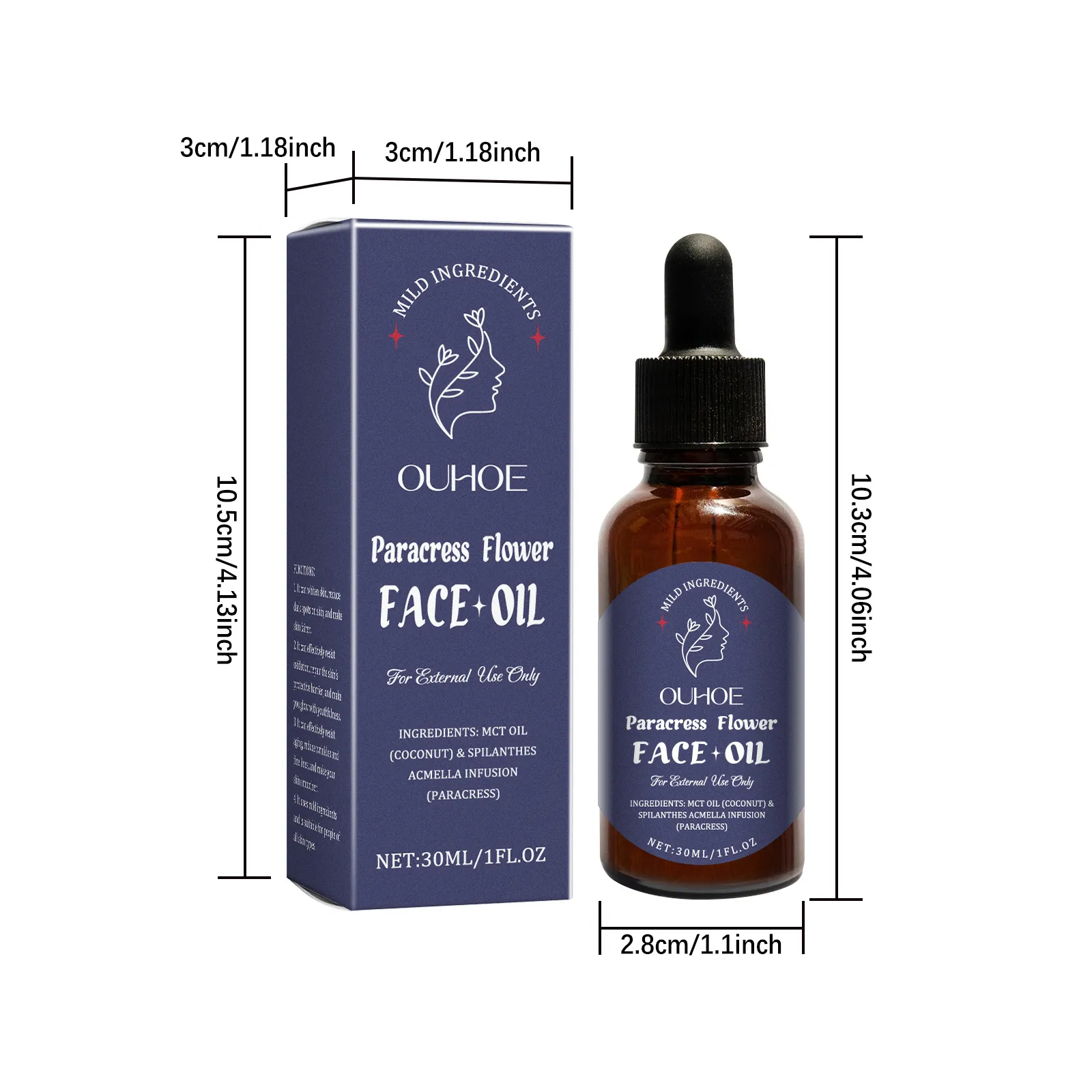 OUHOE Paracress Flower Face Oil – nourishing, brightening facial oil with coconut MCT and paracress extract for smooth, radiant skin.
