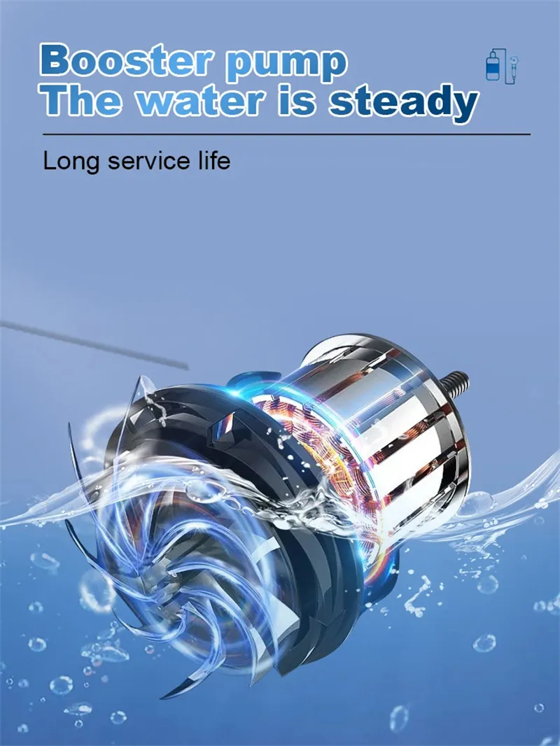 Humanized Design:Â The water pump supports low and high-mode water flows, and the showerhead supports 3 water output