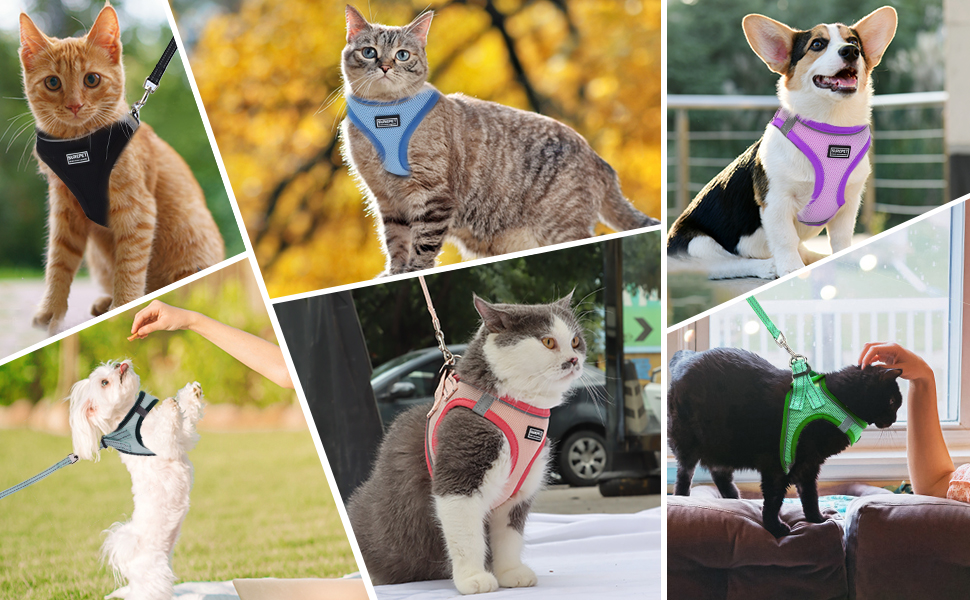 - COMFORTABLE KITTEN HARNESS - The kitten harness is made of a soft mesh fabric, Breathable air mesh keeps your pet cool during outdoor and indoor activities, Suitable for cat's outside running, training, traveling, etc