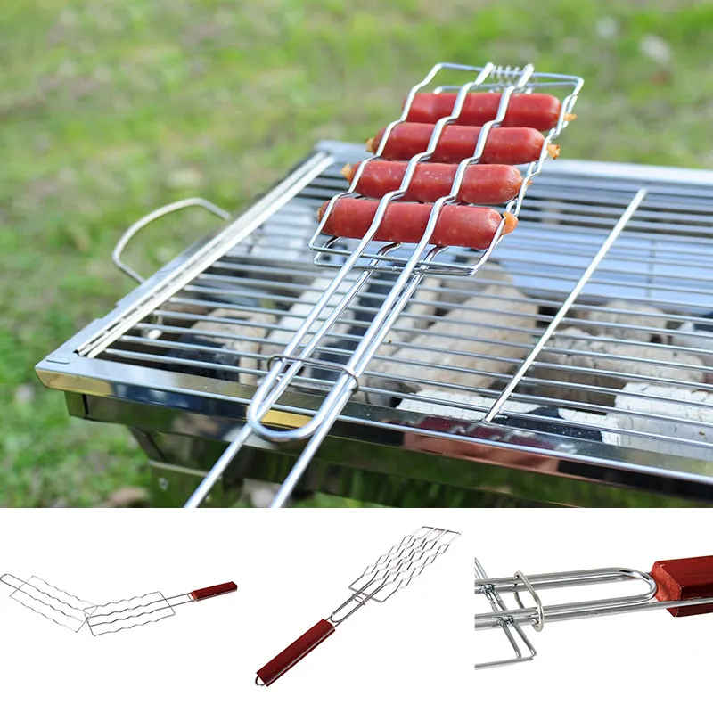 Outdoor Grilling Accessories Barbecue Tools Wooden Handle Sausage Clip Barbecue Clip Vegetable Clip Barbecue Rack